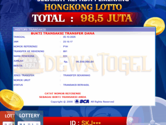 DEWATOGEL JACKPOT TOGEL DI HONGKONG LOTTO Rp 98.500.000,- LUNAS