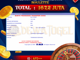 DEWATOGEL JACKPOT LIVE CASINO DI ROULETTE Rp 167.250.000,- LUNAS