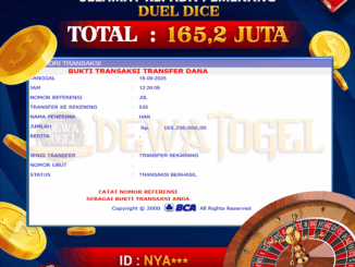DEWATOGEL JACKPOT LIVE CASINO DI DUEL DICE Rp 165.250.000,- LUNAS