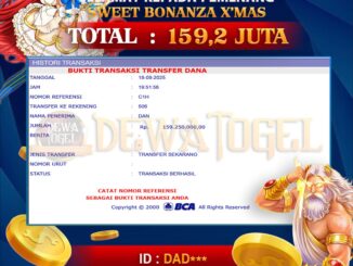 DEWATOGEL JACKPOT SLOT DI SWEET BONANZA XMAS Rp 159.200.000,- LUNAS